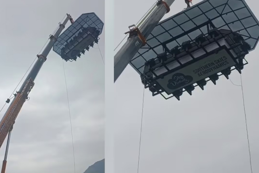 ക്രെയിനില്‍ 120 അടിയോളം ഉയരത്തില്‍ ആകാശക്കാഴ്ചകള്‍ ആസ്വദിക്കുന്നതിനും ആഹാരം കഴിക്കുന്നതിനുമുള്ള സംവിധാനമാണ് സ്‌കൈ ഡൈനിങ്ങില്‍ ഒരുക്കിയിരുന്നത്. പ്രത്യേക പേടകത്തിലാണ് സഞ്ചാരികളെ ക്രെയിനില്‍ മുകളിലേക്ക് ഉയര്‍ത്തുന്നതും നിലത്തിറക്കുന്നതും. ഇതിനായുള്ള ഹൈഡ്രോളിക് ലിവറാണ് തകരാറിലായത്. ആകാശത്തിരുന്ന് ഭക്ഷണം കഴിക്കുന്ന അഡൈ്വഞ്ചര്‍ ടൂറിസത്തിന്റെ ഭാഗമായി അടുത്തിടെയാണ് ഇടുക്കി ആനച്ചാലില്‍ സ്‌കൈ ഡൈനിംഗ് തുടങ്ങിയത്. 120 അടി ഉയരത്തിലാണ് ആകാശത്തിരുന്ന് ഭക്ഷണം കഴിക്കുന്ന പദ്ധതി. അരമണിക്കൂറിലേറെ സമയമാണ് അവിടെ ചിലവിടുക. ഒരേസമയം 15 പേര്‍ക്ക് ഇരിക്കാനുള്ള സൗകര്യം ക്രമീകരിച്ചിട്ടുണ്ട്. ആകാശക്കാഴ്ച്ച ആസ്വദിക്കാനുള്ള സൗകര്യത്തോടെയാണ് പദ്ധതി.